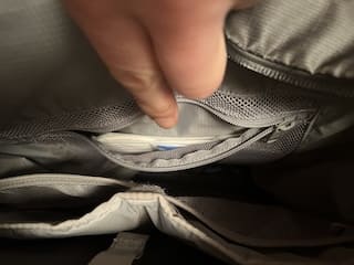 これ、5年使い続けて確信しているポイントなんですが、モンベルのジッパーって本当になめらか、片手がふさがっている時でもスッと開いて、ストレスなく荷物を取り出せます。